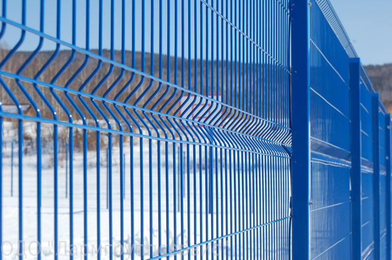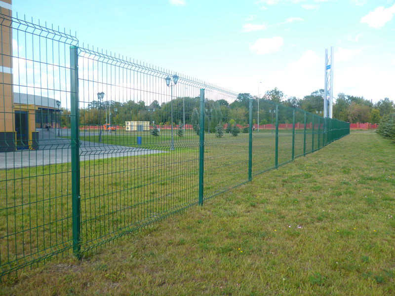 Прочность. Сварные сетчатые панели с 3D изгибом и горизонтальными ребрами жесткости крепятся к столбам скобами или хомутами. Дополнительно мы можем установить нижнее противоподкопное ограждение с заглублением панели.