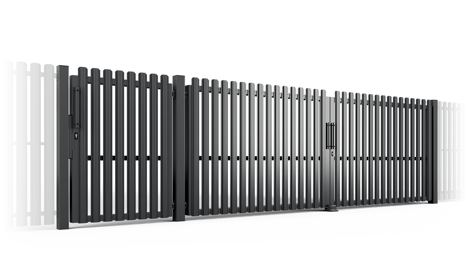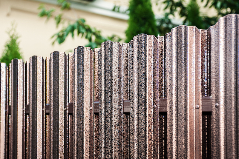 Светопропускная способность. Часто металлический штакетник размещают с определенными промежутками (зазор может равняться ширине ламели). Это позволяет сохранить светопропускную способность ограждения и высаживать возле него растения. Если же нужен глухой забор, то металлический штакетник размещают “шахматкой”. Мы работаем со всеми этими дизайнами.