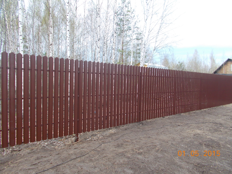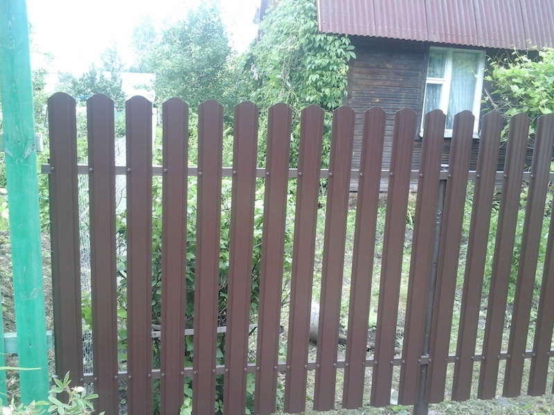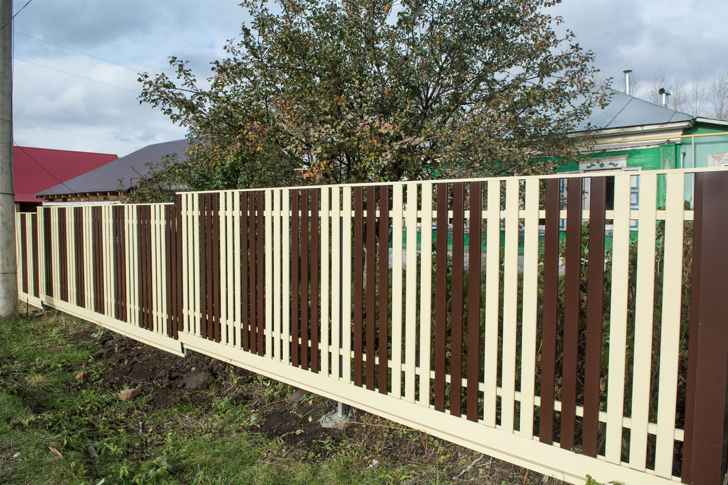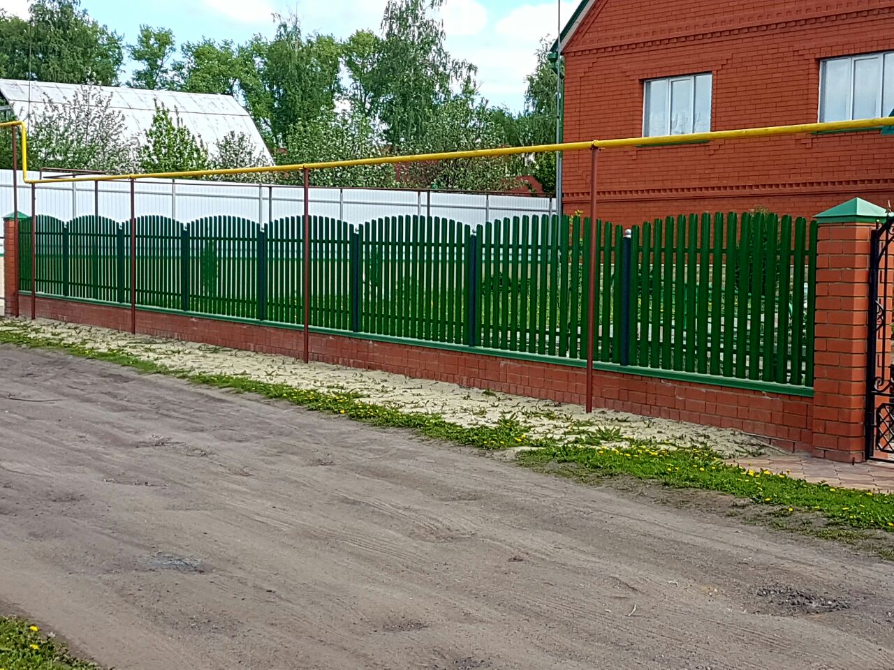 Забор из металлического штакетника с ровными или фигурным верхом под ключ с установкой.