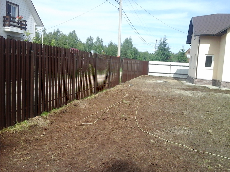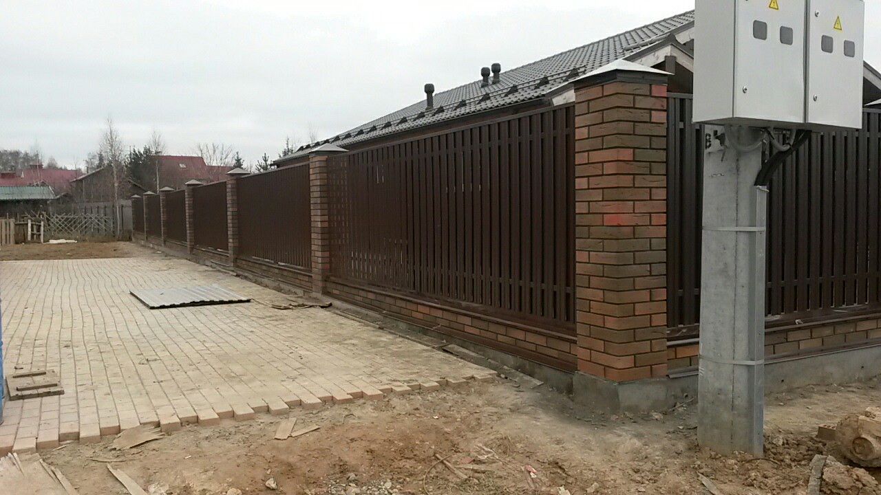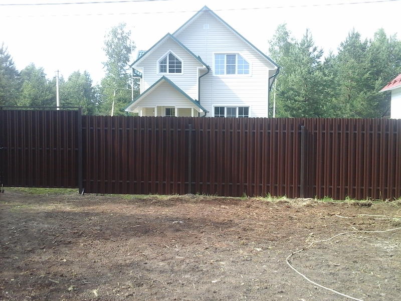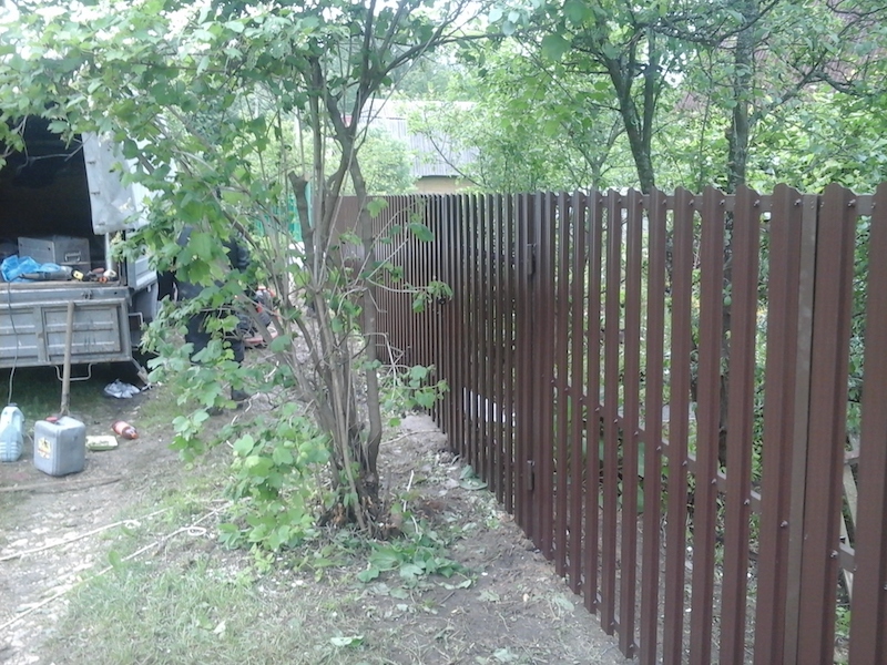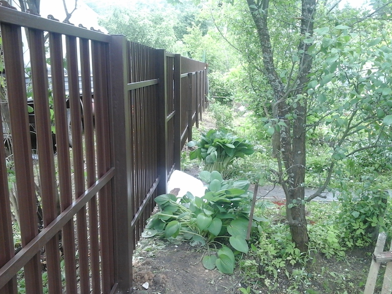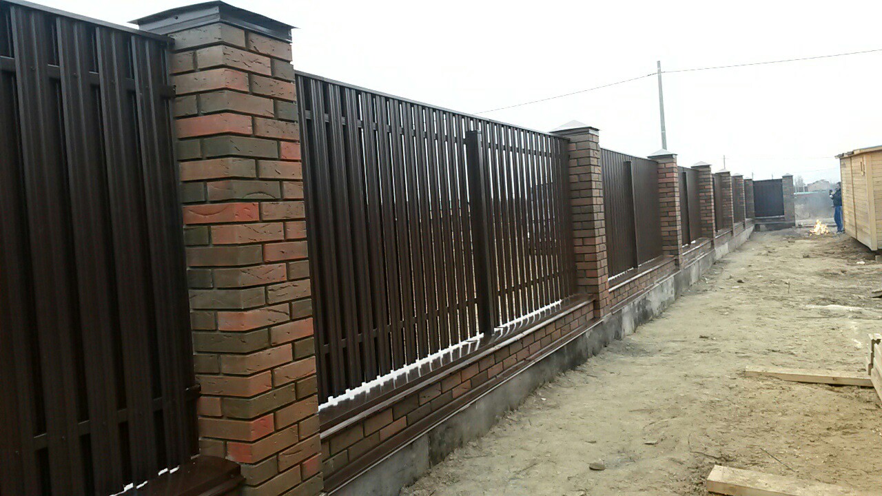 Забор из металлического штакетника с ровными или фигурным верхом под ключ с установкой.