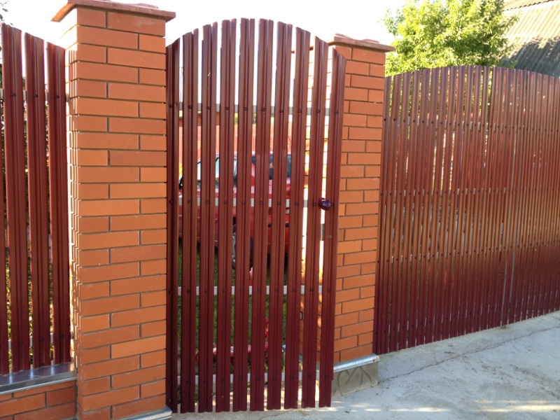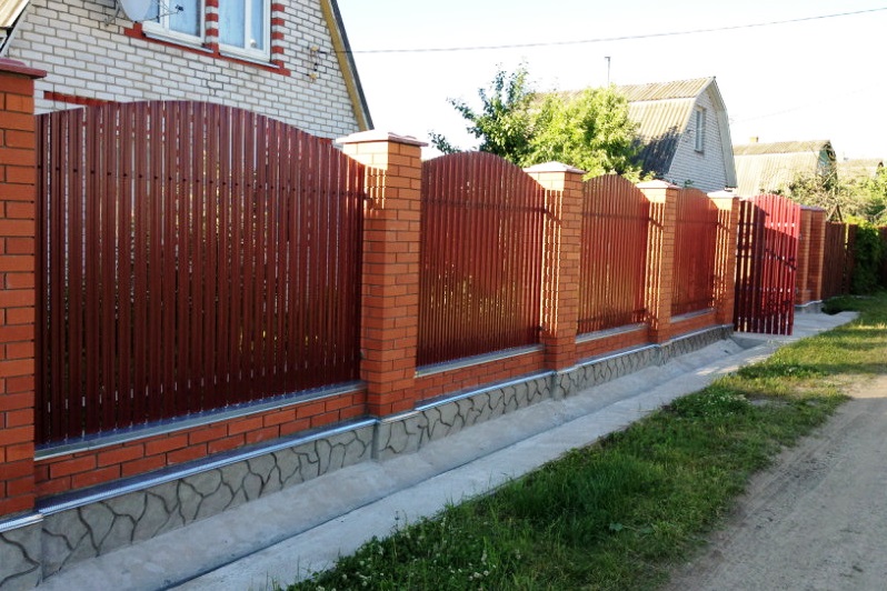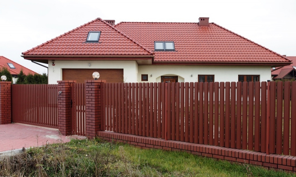 Декоративность. Можно использовать ламели разной высоты, подобрать металлический штакетник с фигурным верхом, выбрать нужный стандартный цвет по каталогу.